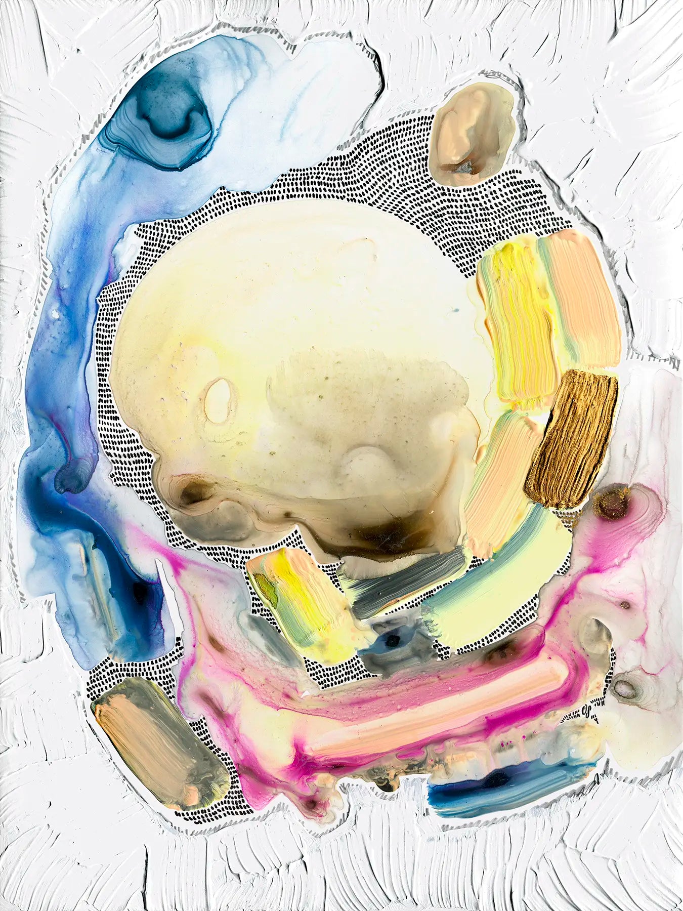 Gouache, pen, and gold leaf on paper